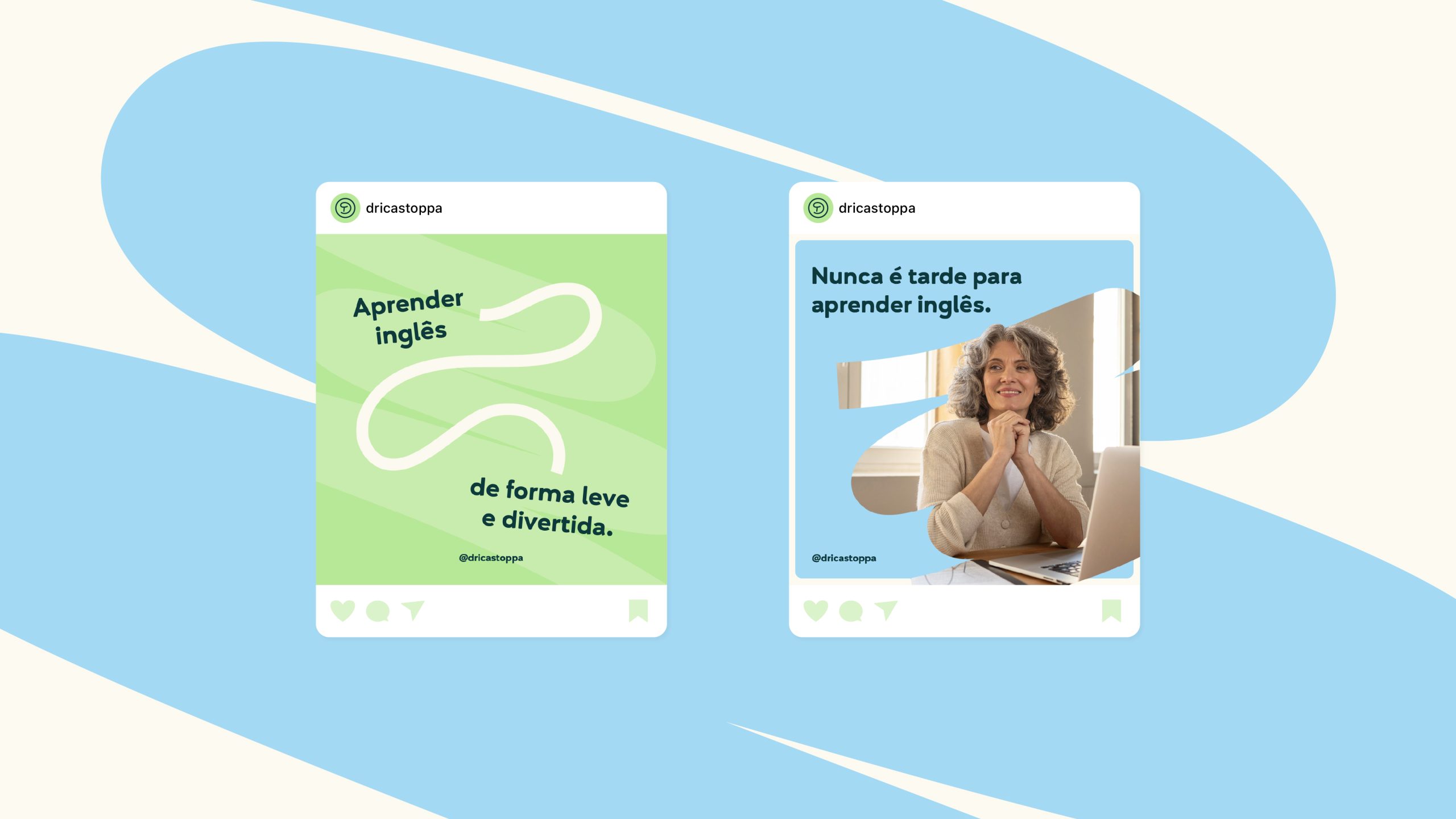Trabalhamos juntos para profissionalizar a apresentação visual do seu negócio, criando uma identidade que transmitisse descontração, acolhimento e a diferenciasse dos professores e escolas de inglês tradicionais.