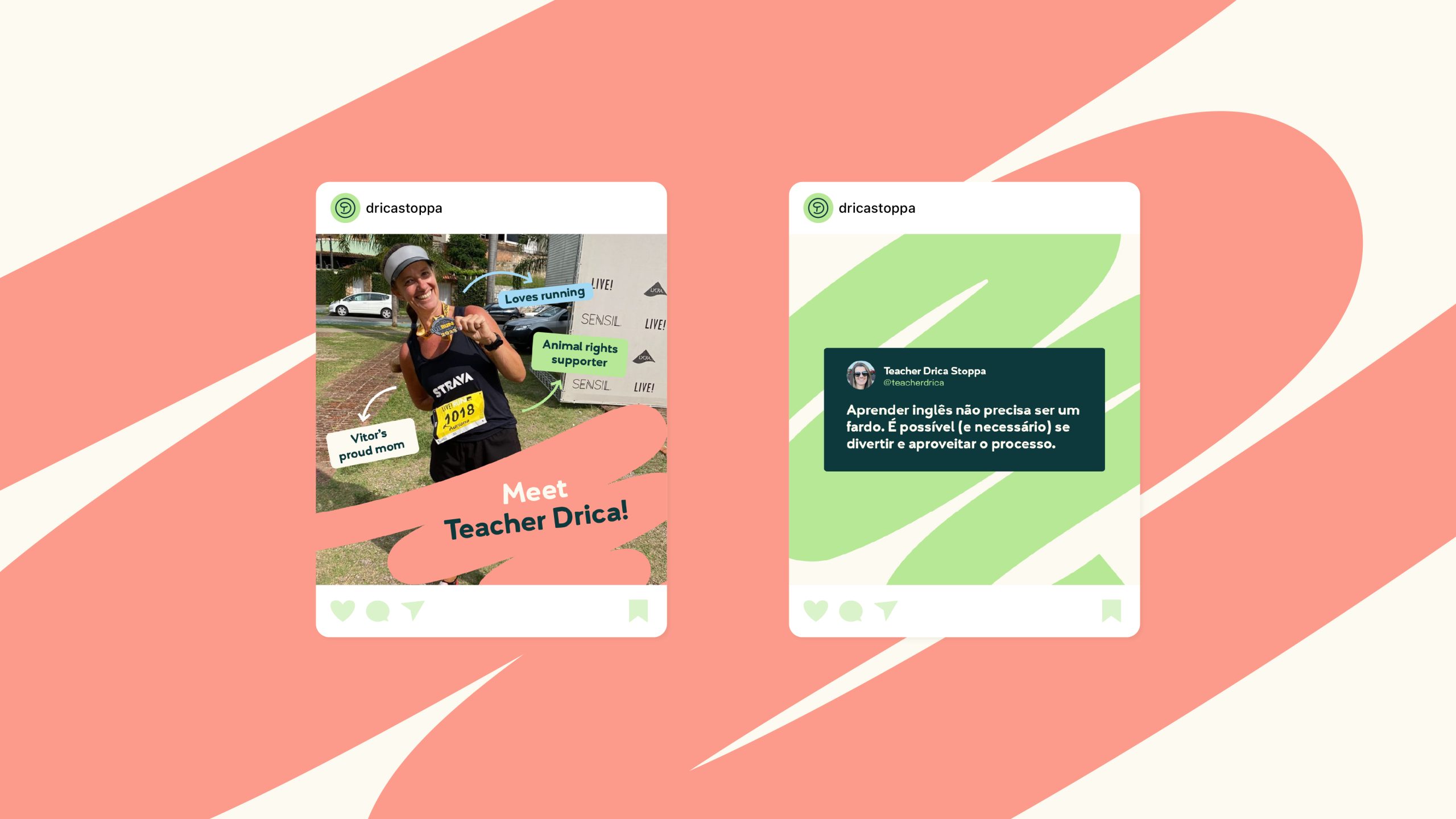 Teacher Drica é uma professora de inglês particular para adolescentes e adultos, com foco no aprendizado de forma leve e divertida.